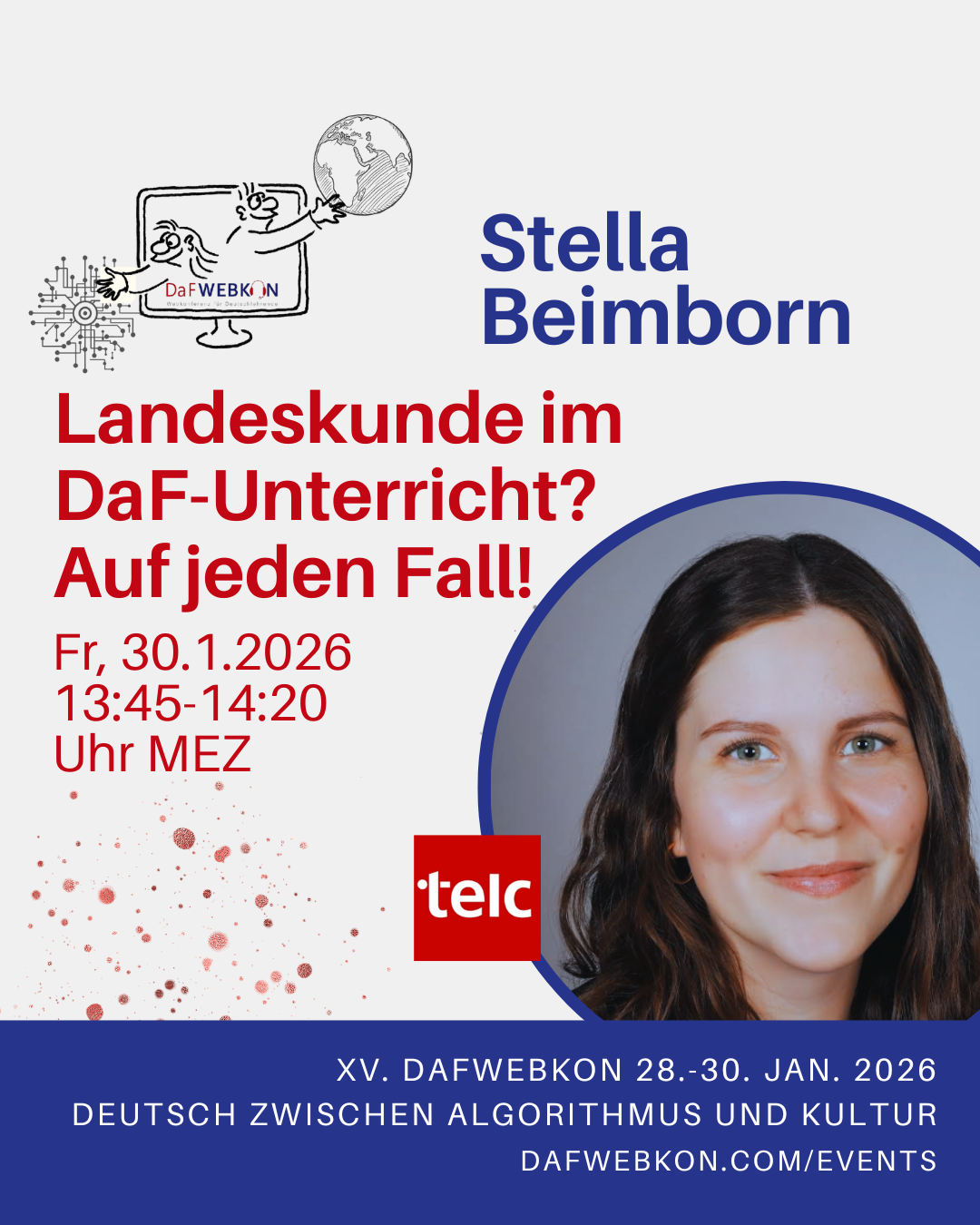 Landeskunde eröffnet spannende Einblicke in das Leben in Deutschland und ist eine motivierende Facette des DaF-Unterrichts. In diesem Vortrag stellen wir Ihnen exemplarisch einige Faktencheck-Seiten der Lehrwerksreihe Auf jeden Fall! vor, die Input zu verschiedenen landeskundlichen Informationen bieten und zum Austausch, zur Recherche und Meinungsbildung anregen. Im Fokus steht der gesellschaftliche Aspekt, der Alltagssituationen thematisiert und Lernenden das Leben in Deutschland näherbringt.