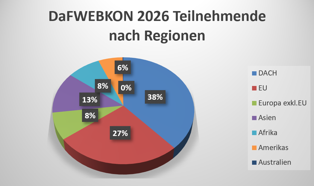 2024 nahmen 2.070 Personen aus allen Kontinenten an der DaFWEBKON teil. Den Schwerpunkt bildeten Teilnehmerinnen und Teilnehmer aus den DACH-Ländern.