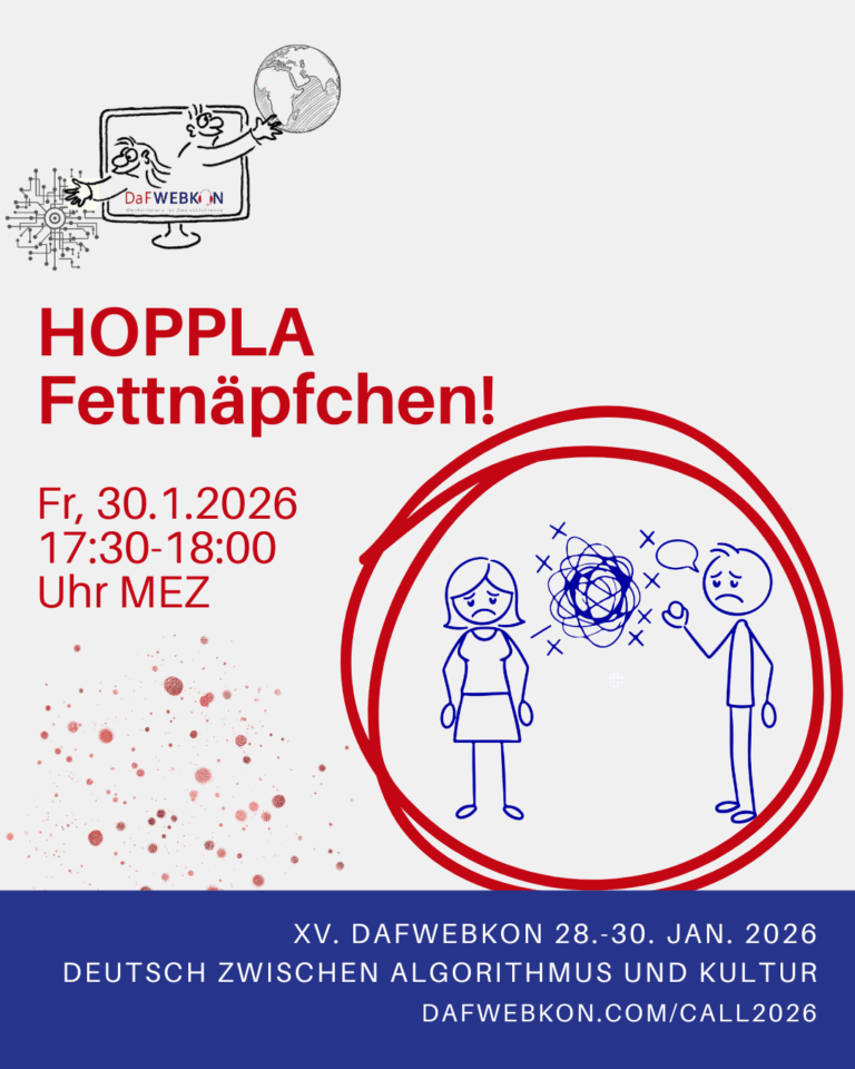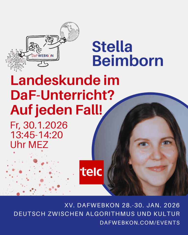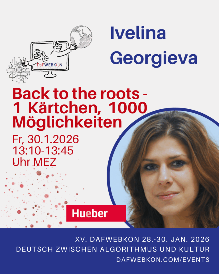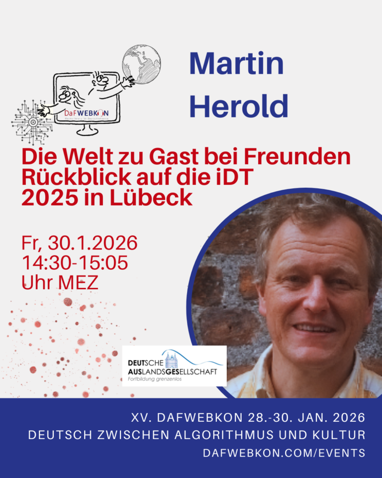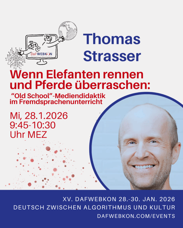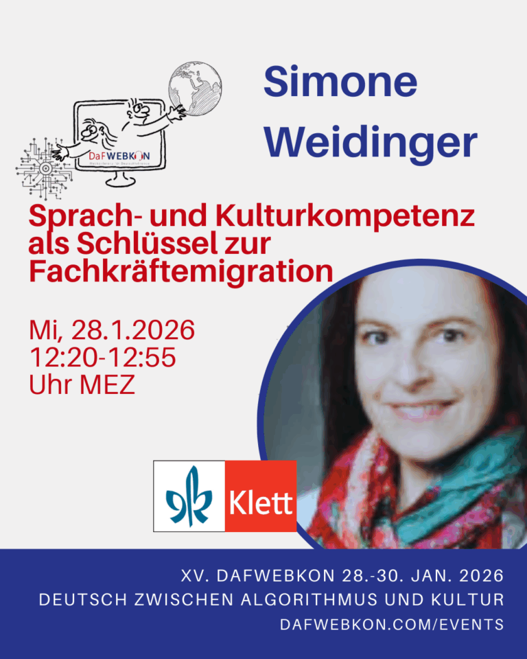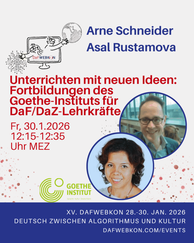 Die DaFWEBKON ist eine einzigartige Webveranstaltung mit Fokus auf Medien für Deutsch als Fremdsprache/Zweitsprache, die PraktikerInnen, Weiterbildungsinstitutionen und Anbieter weltweit via Internet zusammenführt.