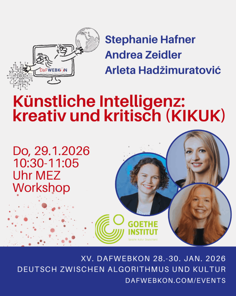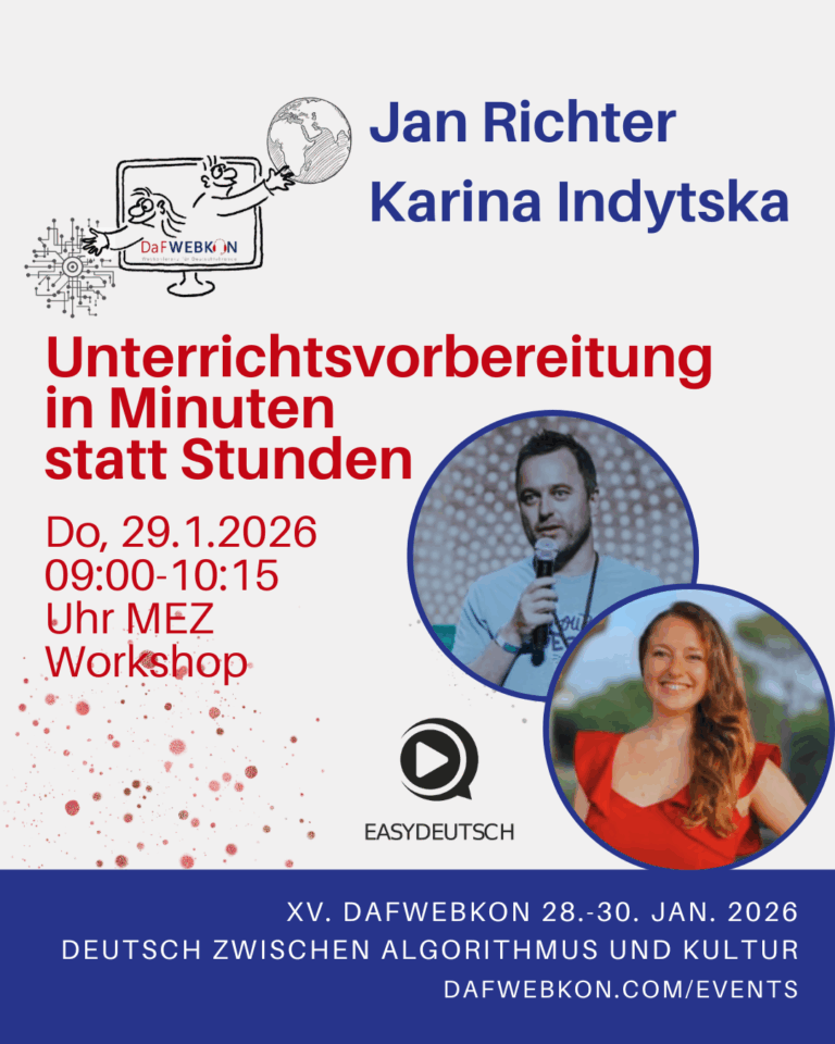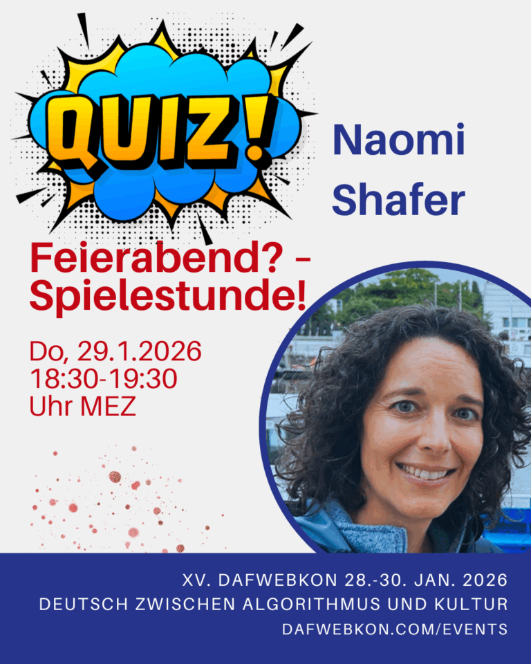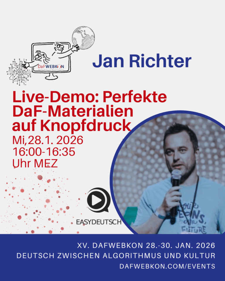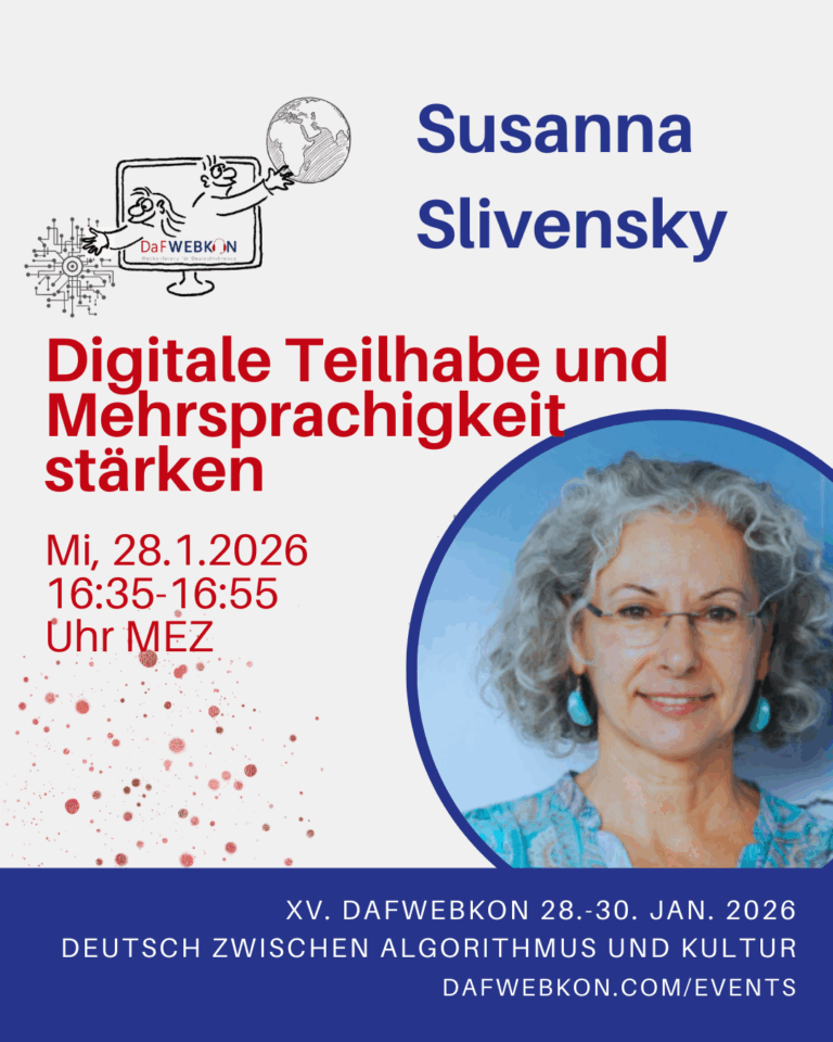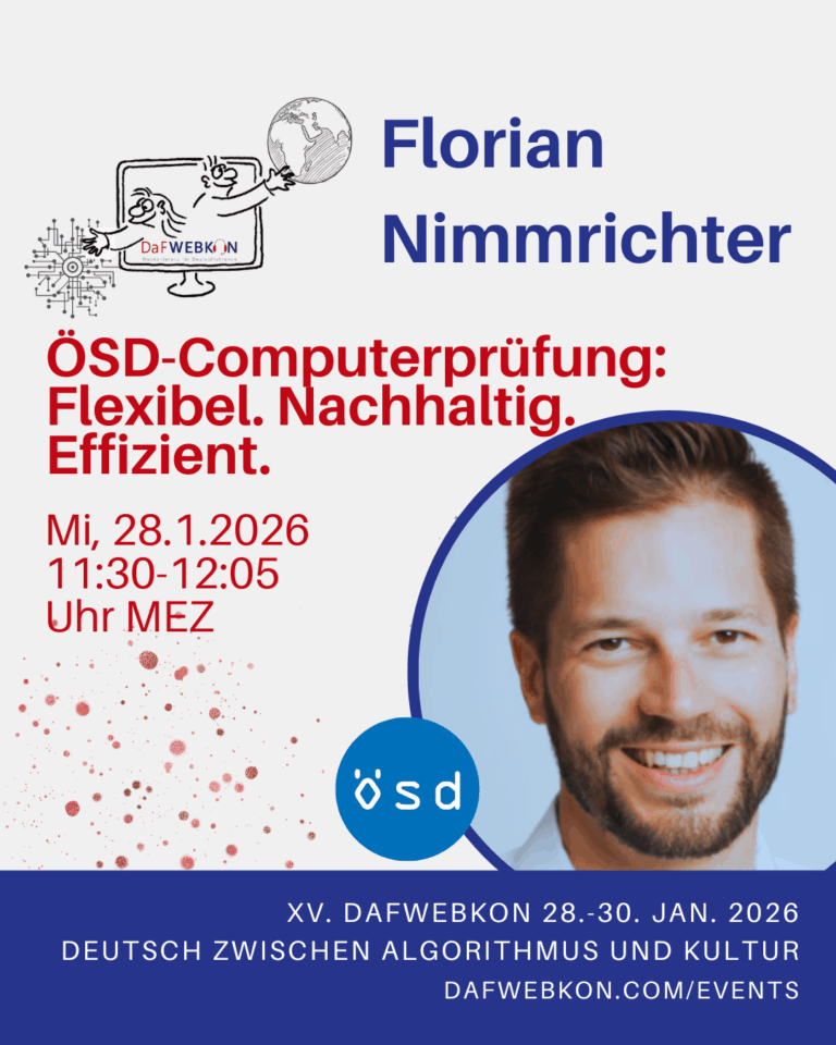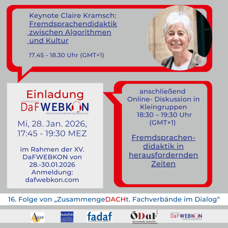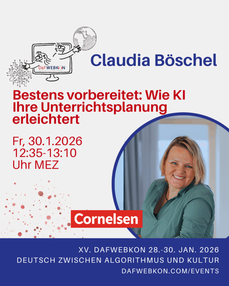Die DaFWEBKON ist eine einzigartige Webveranstaltung mit Fokus auf Medien für Deutsch als Fremdsprache/Zweitsprache, die PraktikerInnen, Weiterbildungsinstitutionen und Anbieter weltweit via Internet zusammenführt.